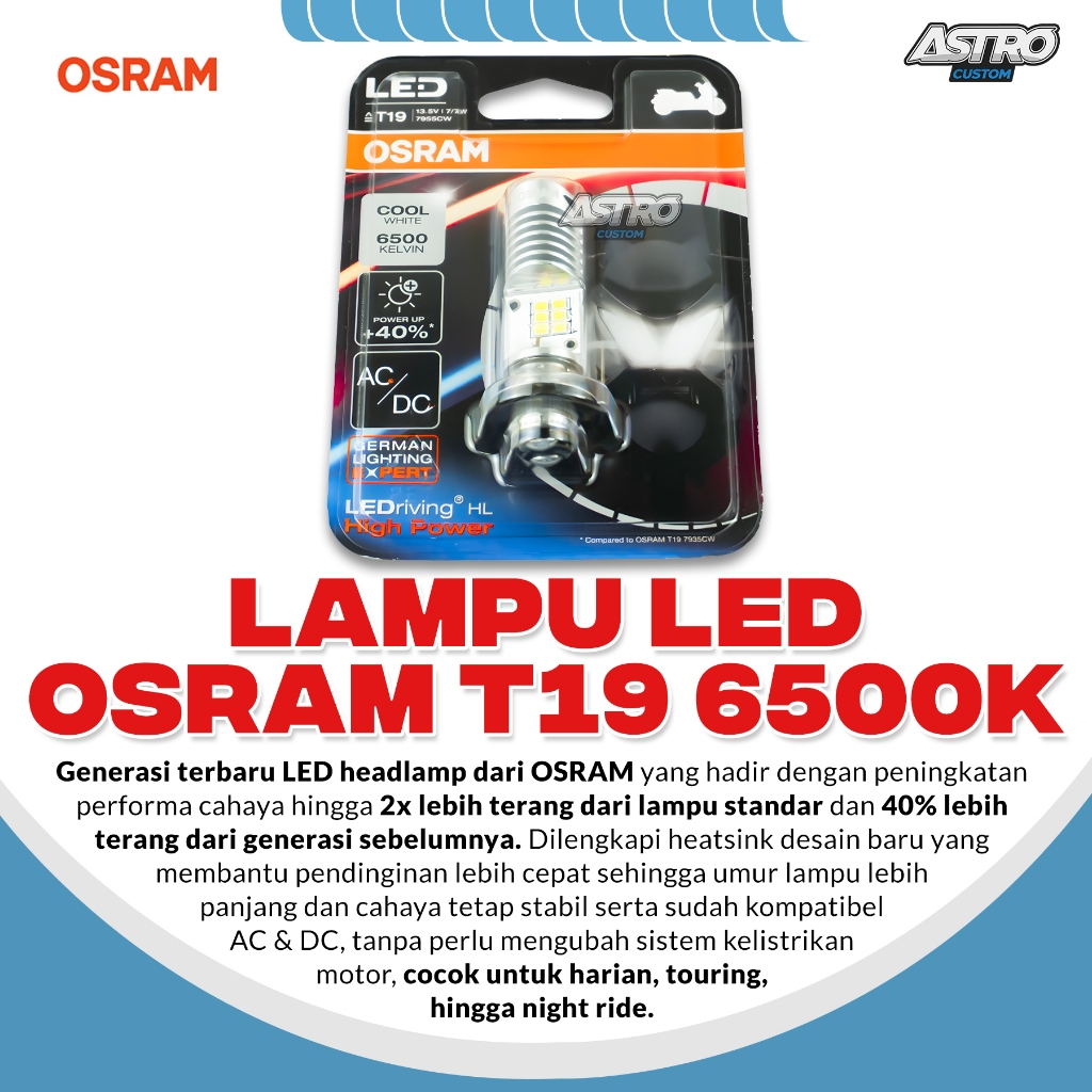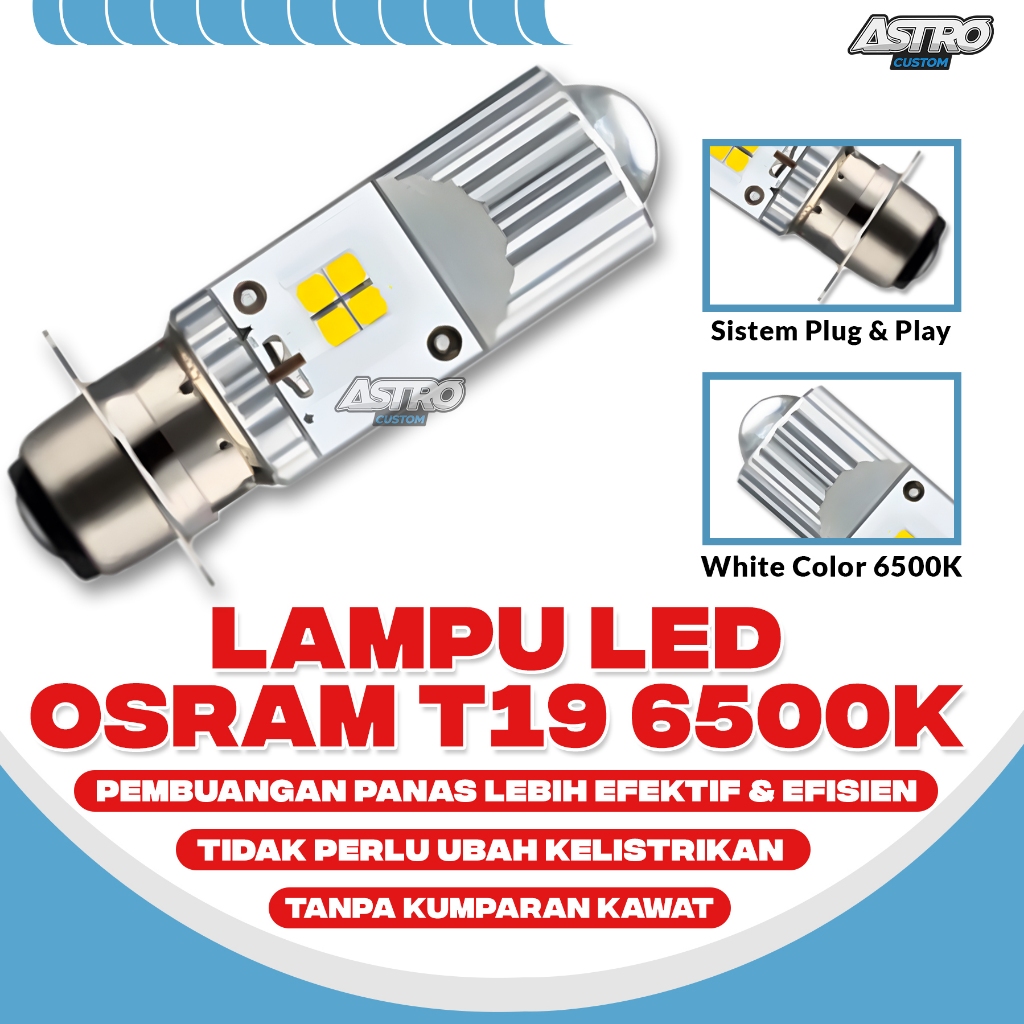 Osram LED White Lampu Utama Motor Vario 125 150 PCX ADV Beat Scoopy Revo T19 6500 K AC/DC Universal