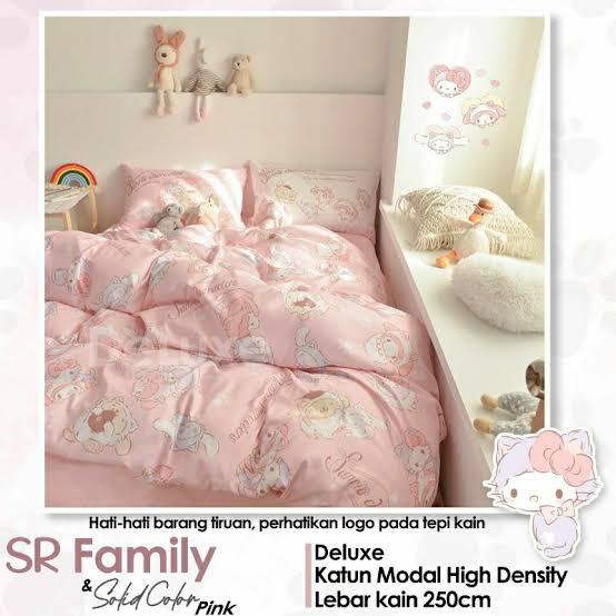 Bedcover set Sprei Anak Antigeser Katun Motif Sr Family Ukuran Double 200x200 180x200 160x200