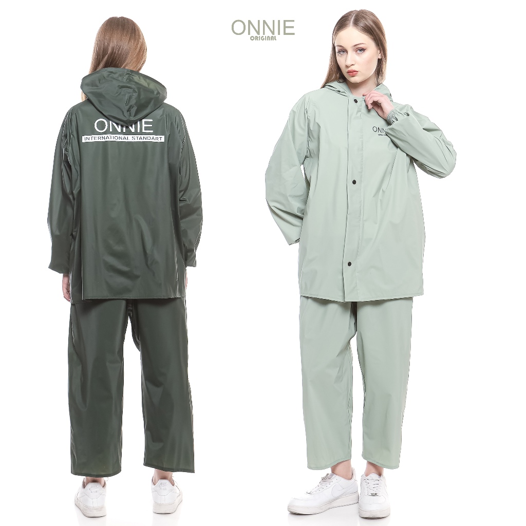 ONNIE Jas Hujan Pria Wanita D3W4SA Terbaik Bahan PVC Anti Rembes Warna Army Original 100 PERSEN