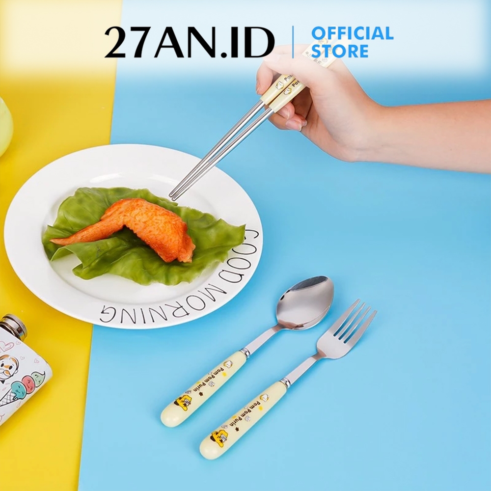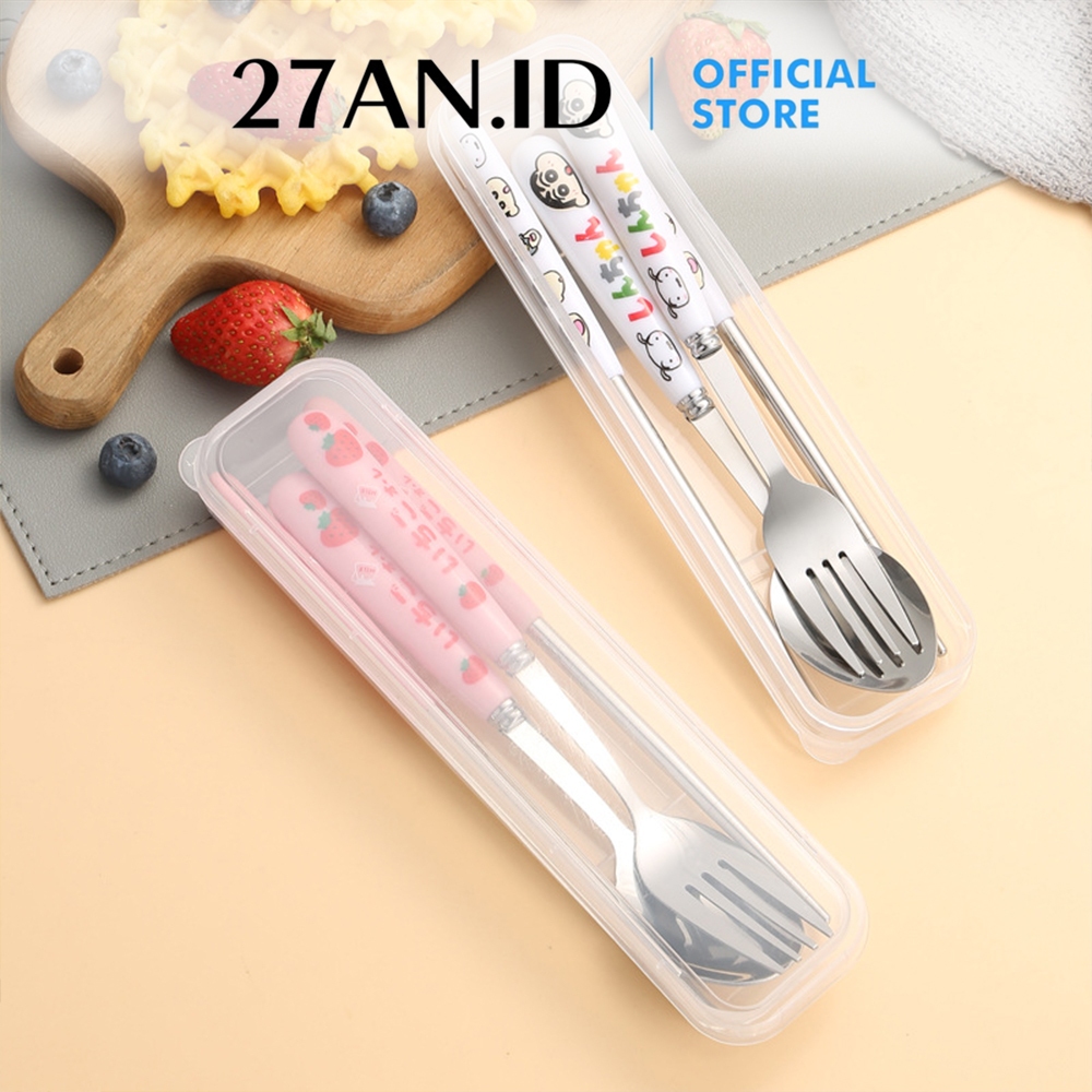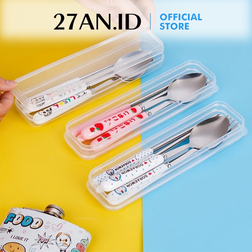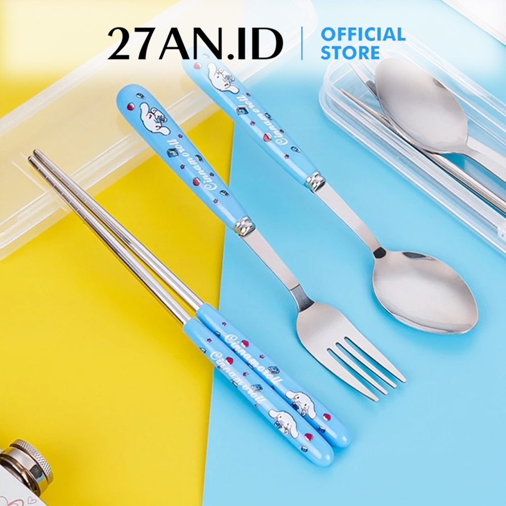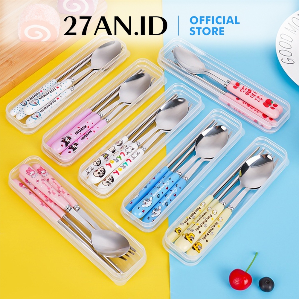(27AN.ID) Alat Makan Set H937 Sendok Garpu Sumpit Stainless Steel Peralatan Makan Plus Box Karakter Anak Sanrio Murah Gr