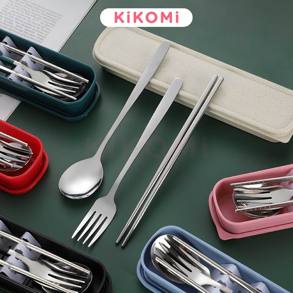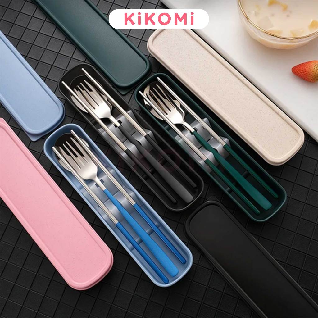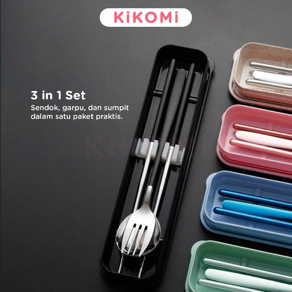 Set Alat Makan Korean Stylish 3 in 1 Sendok Garpu dan Sumpit Stainless Steel Traveler Portable KK Murah Gratis Ongkir Ga