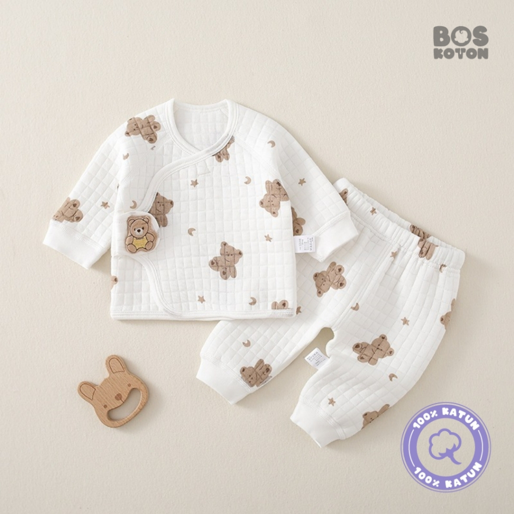 Boskoton Setelan Kimono Bayi Newborn 0-6 Bulan – Katun Premium Adem Motif Bear Unisex