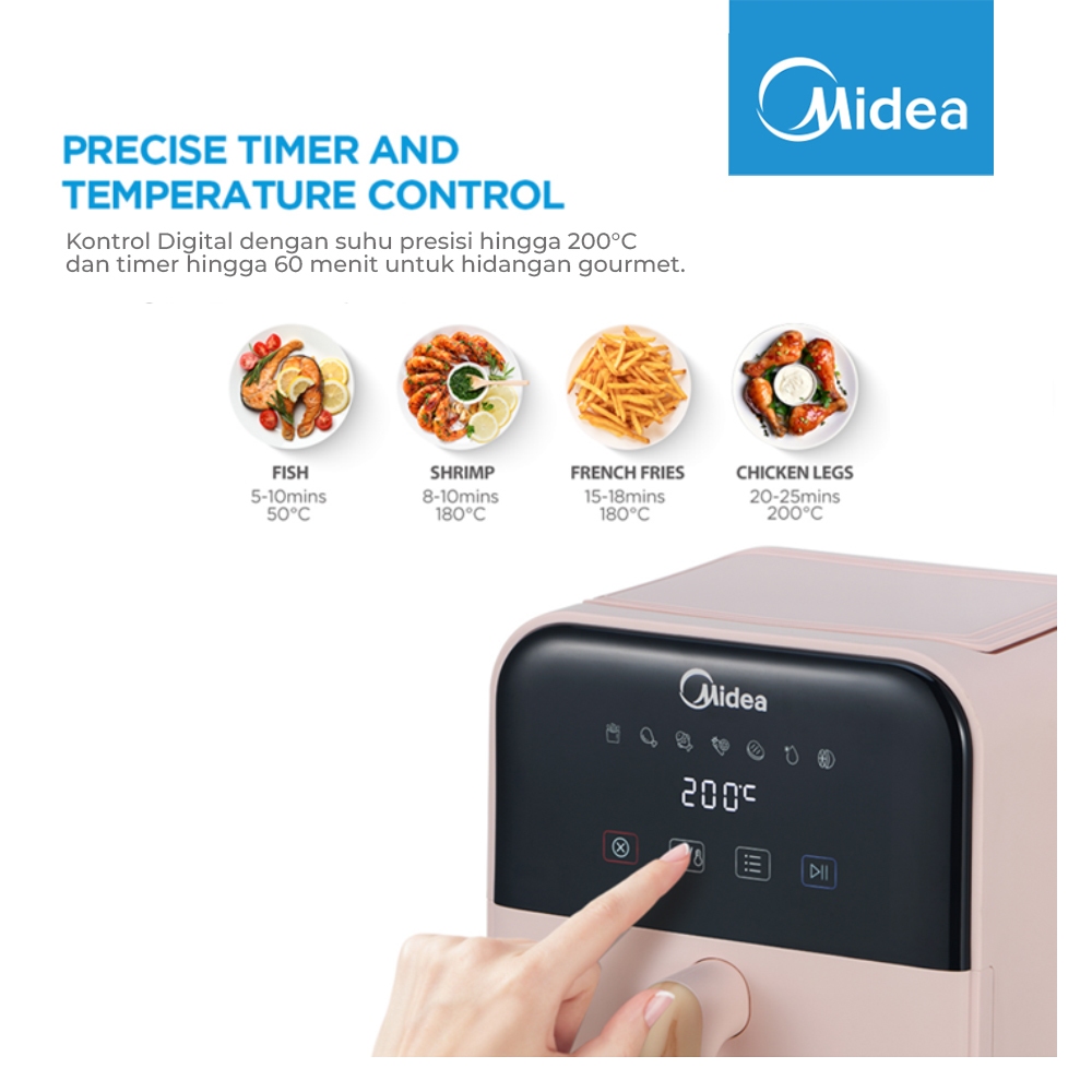 Midea Air Fryer 4L 650W Low Watt MAD40007ADI Penggorengan Tanpa Minyak Digital Touch Pink