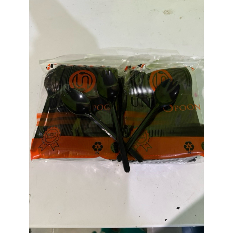spork HITAM / senpu HITAM(sendok garpu jadi satu) isi 100 pcs merk uno spoon Murah Gratis Ongkir Garansi Pengiriman