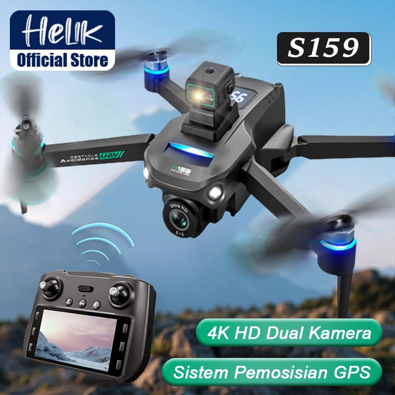 HELIK S159 Drone GPS Layar Besar WIFI FPV HD Dual Camera Mini Drone Anti Tabrakan Brushless Motor Drone
