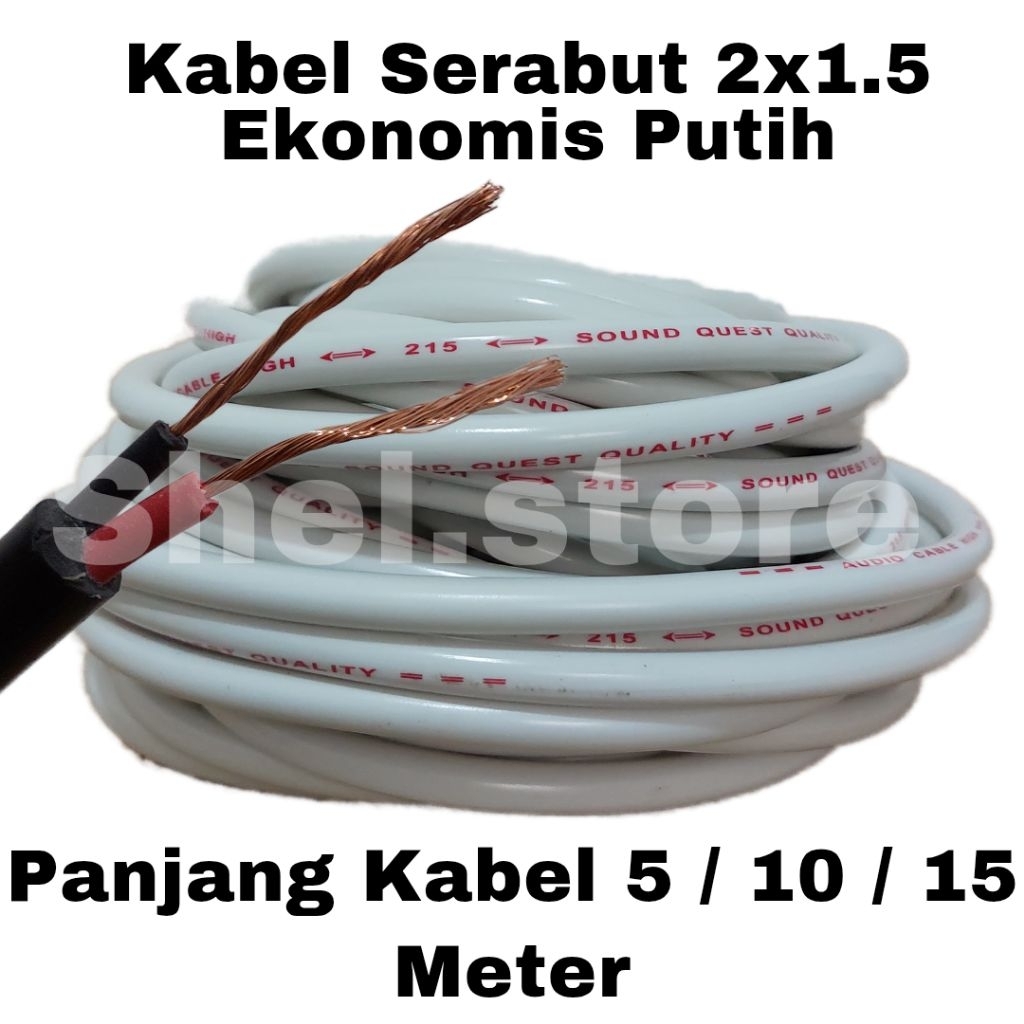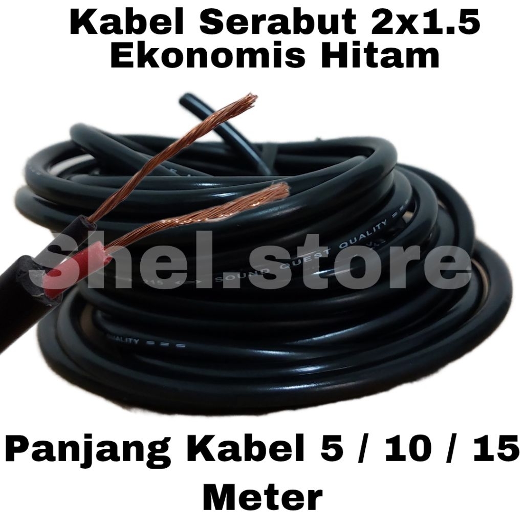 KABEL LISTRIK SERABUT 2 X 1.5 UKURAN 5 METER 10 METER 15 METER HITAM PUTIH | KABEL LISTRIK EKONOMIS | KABEL LISTRIK ME