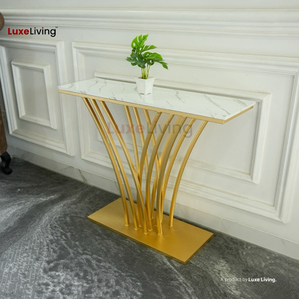 Meja Console Minimalis Besi Industrial Modern Meja Ruang Tamu Foyer Hpl Motif Marmer Luxe Living