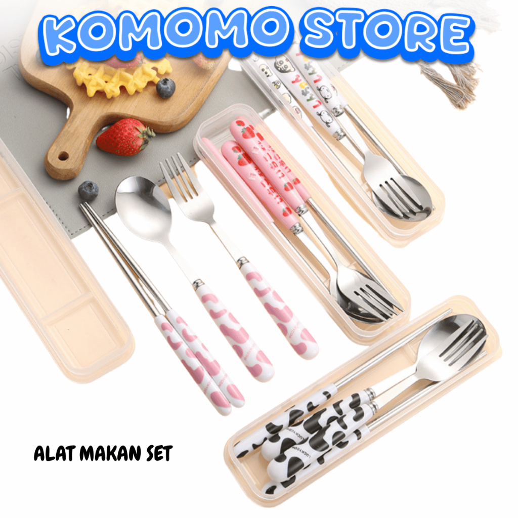 KMM ALAT MAKAN SET SENDOK GARPU SUMPIT STAINLESS STEEL PERALATAN MAKAN PLUS BOX KARAKTER ANAK SANRIO Murah Gratis Ongki