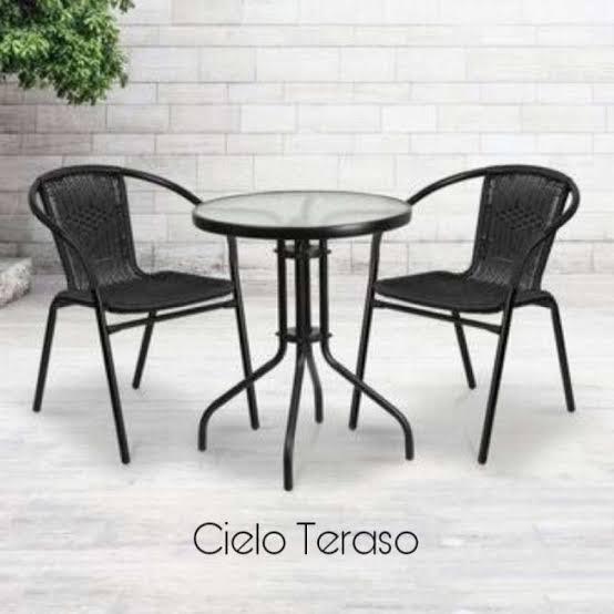 Set Teras Meja Kursi Teras Besi Anyam Rotan Sintetis
