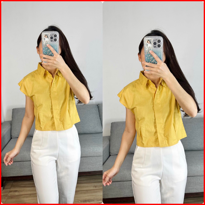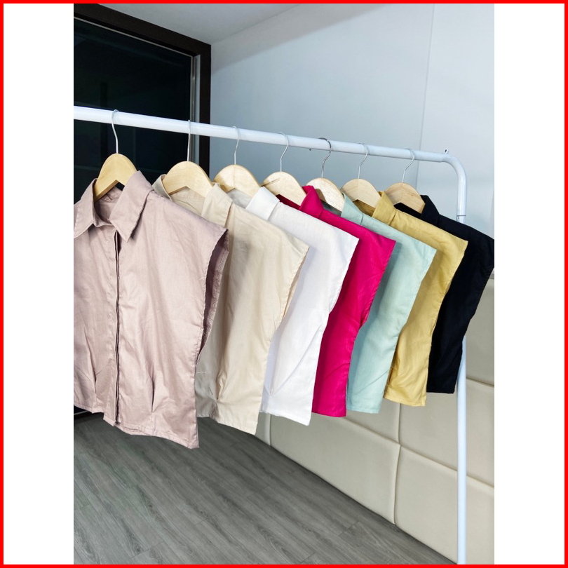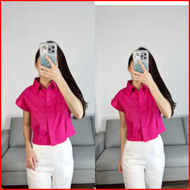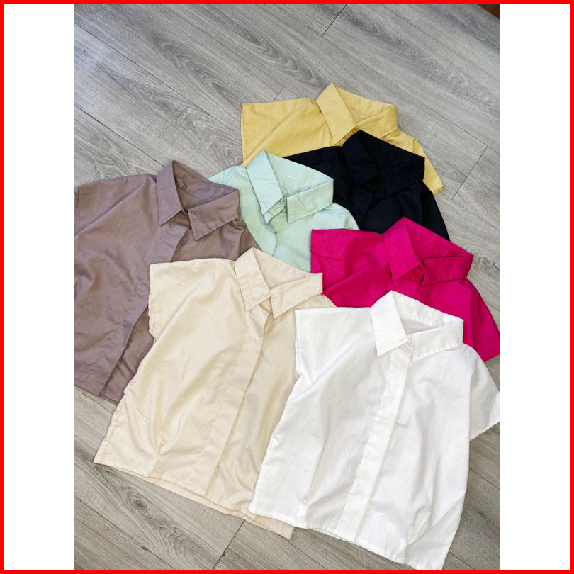 Atasan Wanita Lengan Pendek Kemeja Casual Bahan Katun Crop Shirt