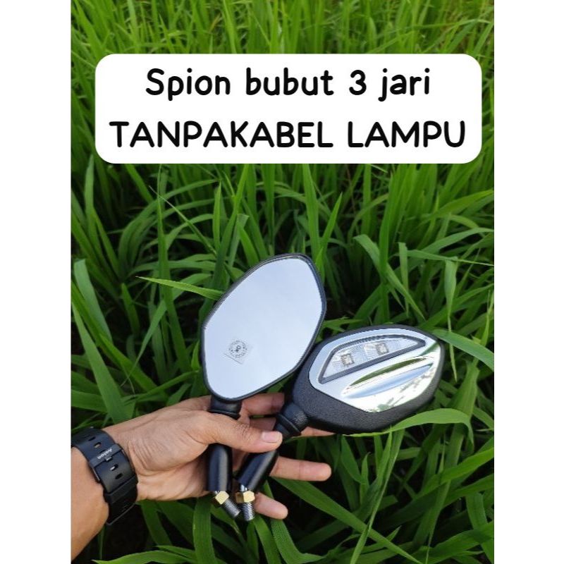 Spion Led Bubut 3 Jari + sen nyala + soket Style Ala Plat Kt Vario125 150 160 Beat Pcx Adv universal