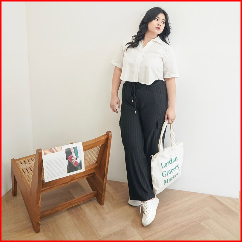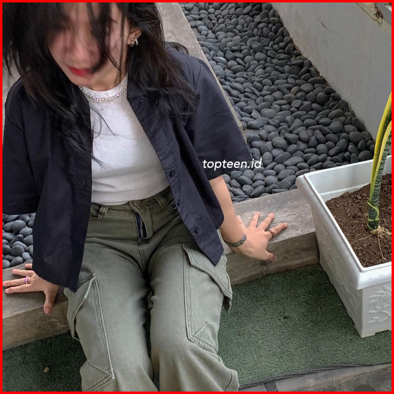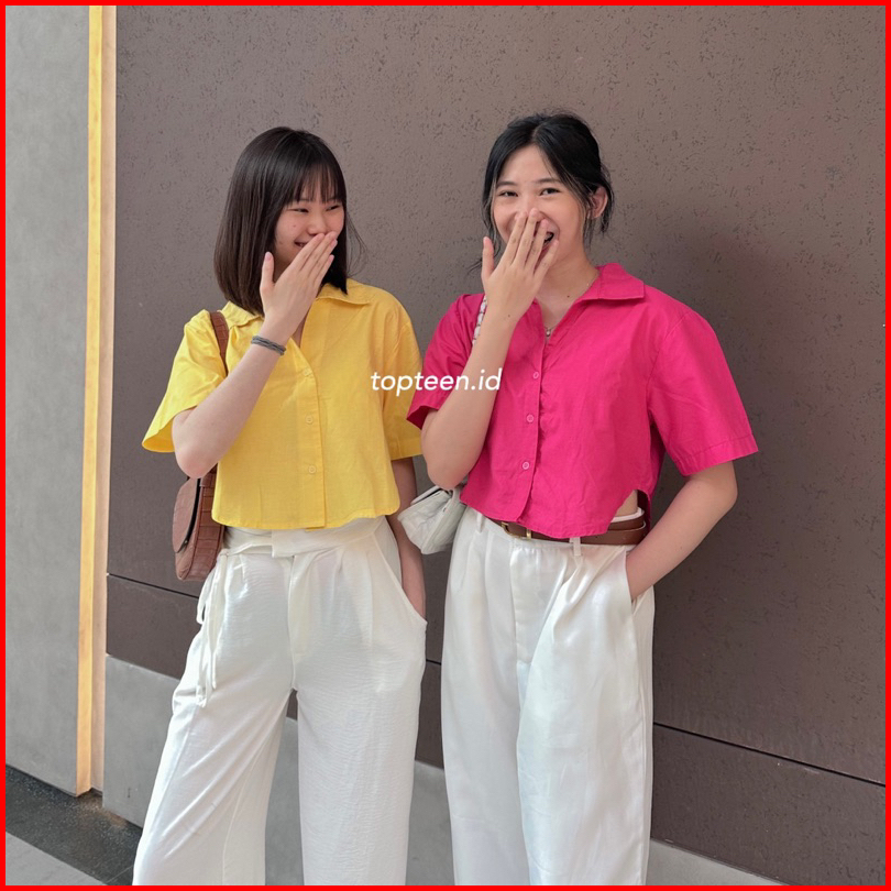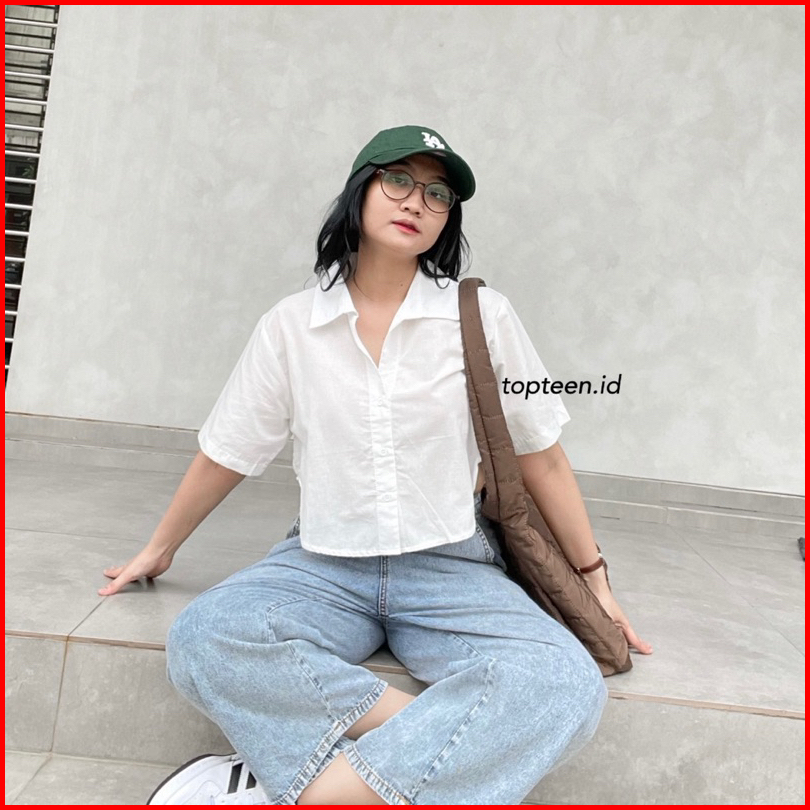 Topteen - Kaori Crop Katun Kemeja Big Size Wanita