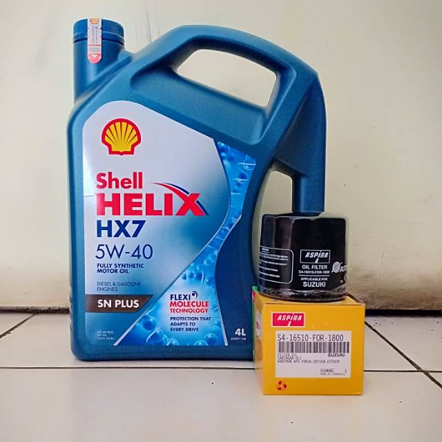 Paket Oli New Shell Helix Hx-7 5W-40 + Filter Oli Ertiga, Apv, Splash, Karimun Wagon, Ignis