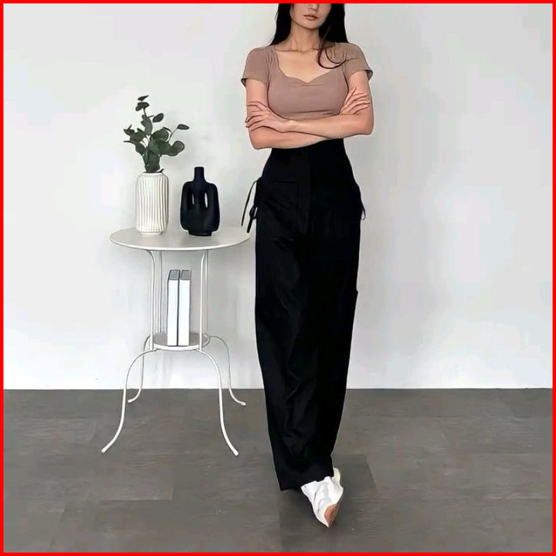 Cargo Pants Wanita Highwaist Twill Combad Dengan Karet Belakang Pinggang Model Tali Samping - Celana Kargo Celana Terbar