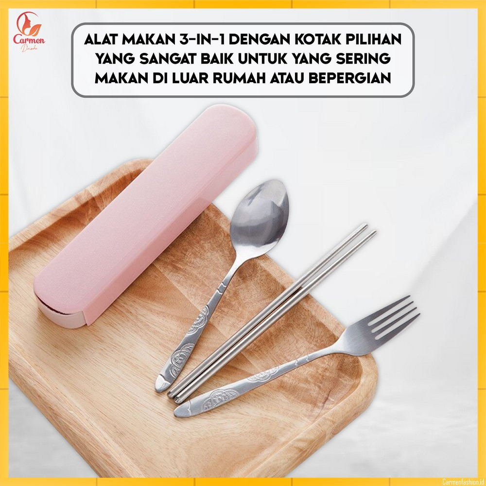 Sendok Dan Garpu Set Sendok / Peralatan Makan Stainless Steel Traveling 3IN1 Include Kotak CF C495 Murah Gratis Ongkir G