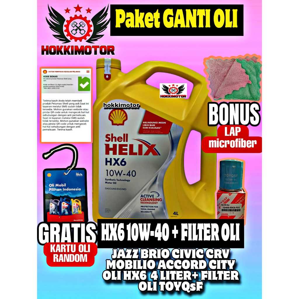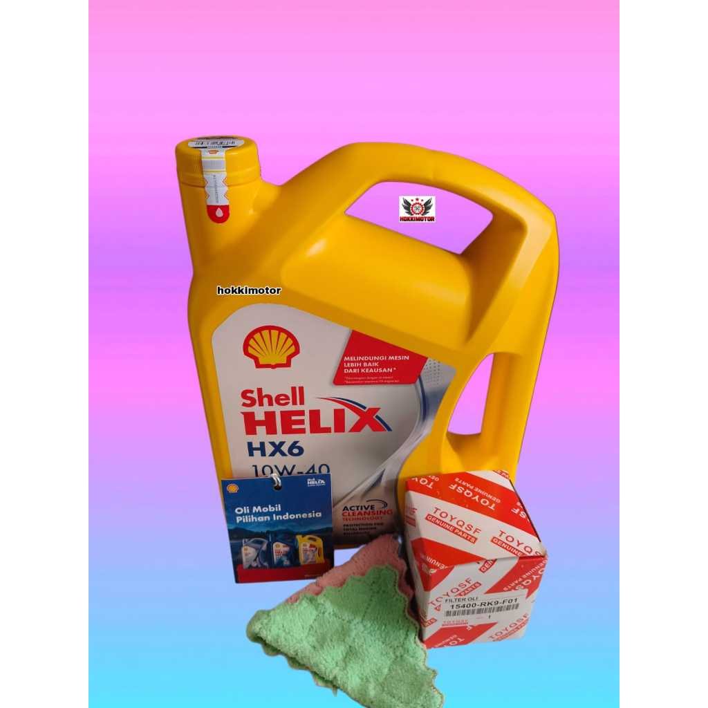 [Gratis Filter Oli Toyqsf 15400-Rk9-F01] Paket Ganti Oli Mesin Shell Helix6 Sae 10W-40 4 Liter Honda Civic Crv Hrv Brv