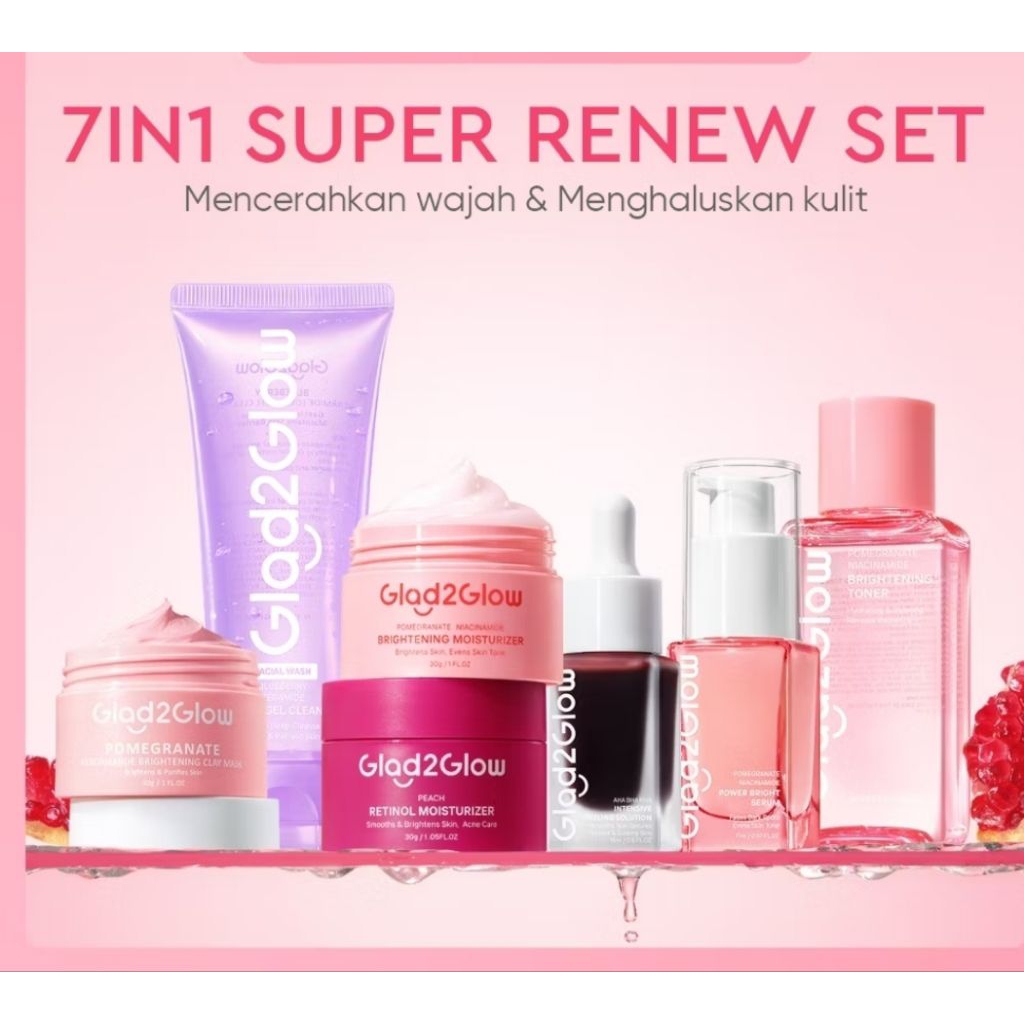 Glad2glow Renew Paket Brightening Serum-Moist-MilkCleanser-Toner-claystick-Peeling serum-moist retinol-Clenser Blueberry