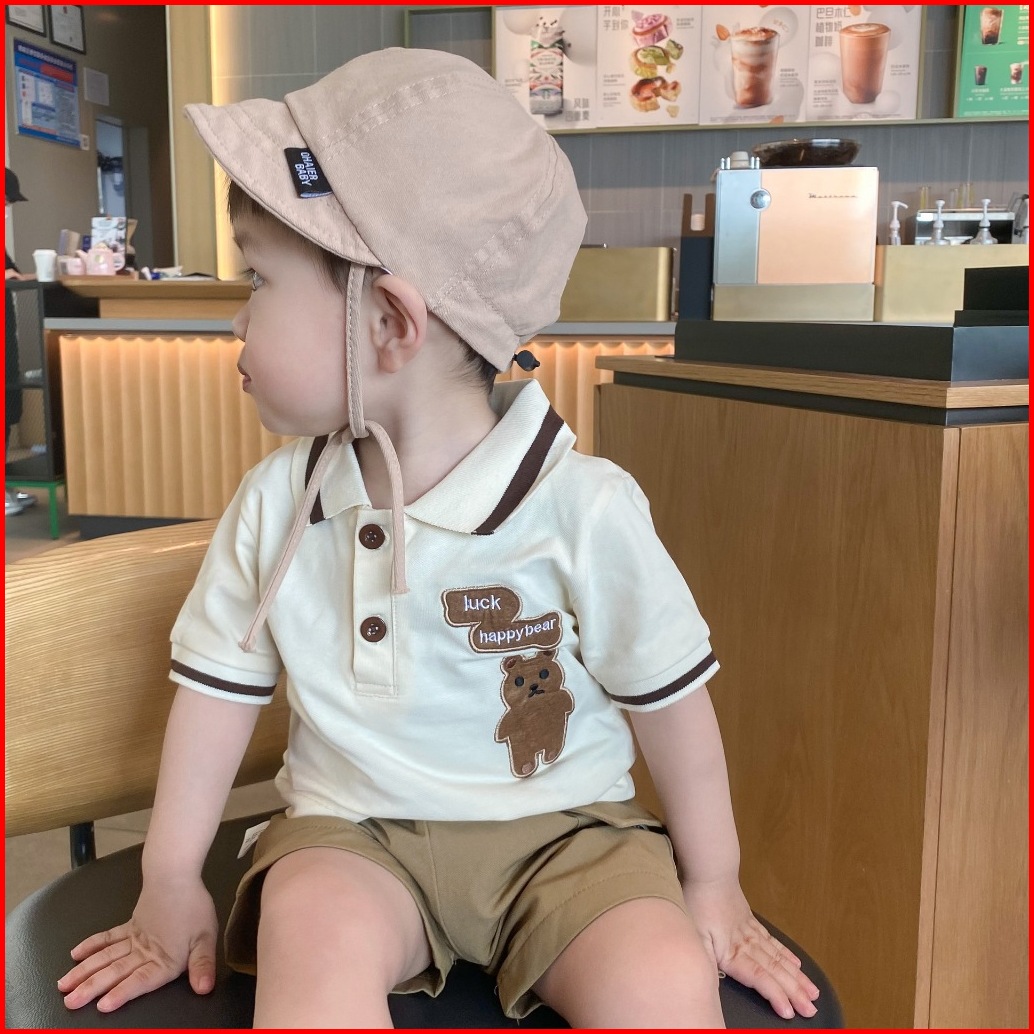 Bykiddos - Setelan Baju Dan Celana Anak Motif Cream Bear Kaos Anak Premium Kaos Anak Kaos Dan Celana Premium
