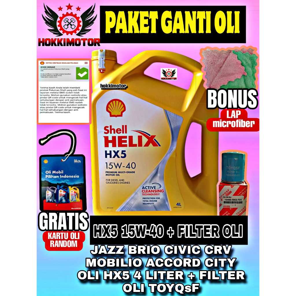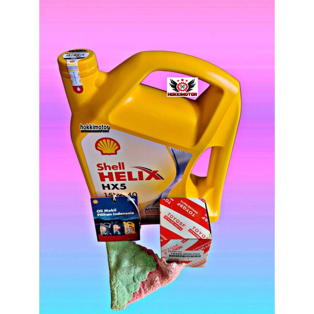 [Gratis Filter Oli 15400-Rk9-Fo1 Jazz Toyqsf ]Paket Ganti Oli Mesin Shell Helix5 Sae15W-40 4 Liter