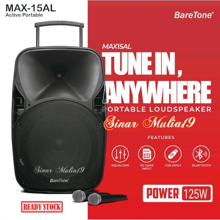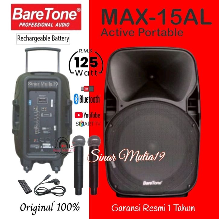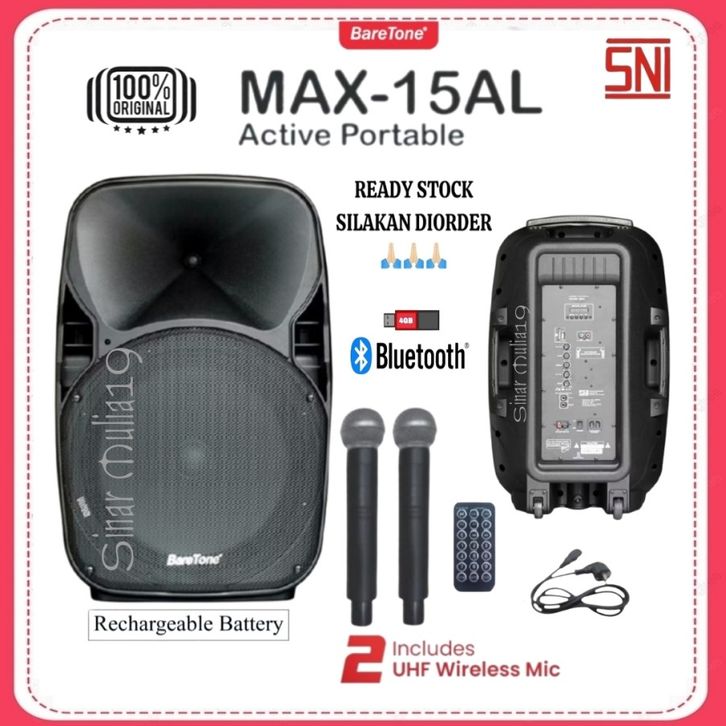 SPEAKER BARETONE 15 INCH BARETONE MAX15AL MAX 15AL ORIGINAL USB BT 2 MIC WIRELESS