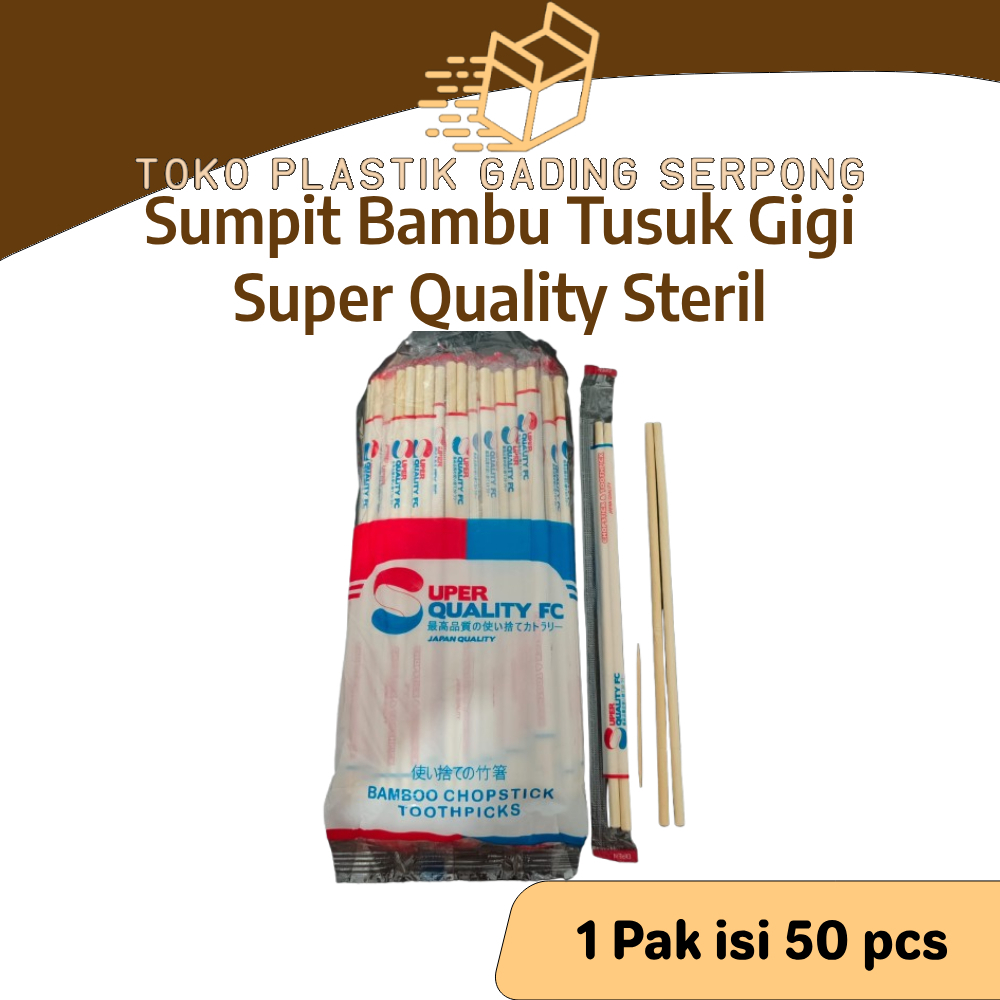 Sumpit Bambu Steril / Sumpit Bambu Bakmi Mie Merk Super / Libra / ION / Koala Dengan Tusuk Gigi Isi 50 / Pack Murah Grat