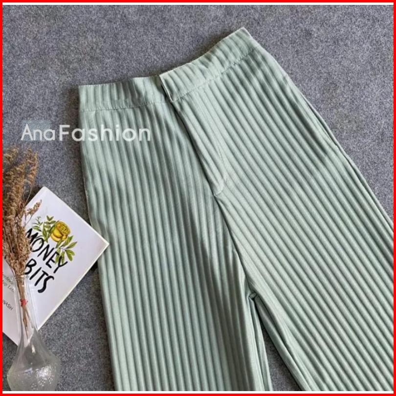 Anafashion- Celana Kulot Knit Rib Amber Panjang - Knit Pants - Loose Pants Highwaist Kulot