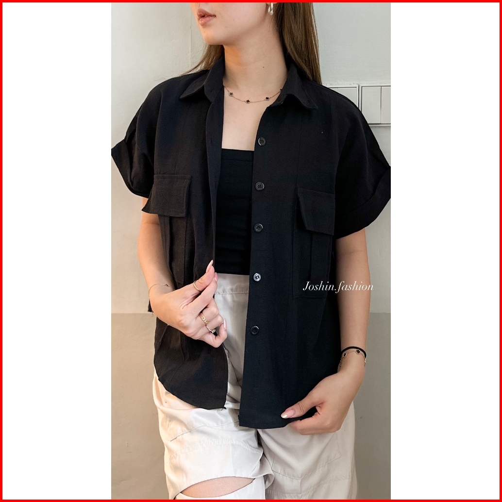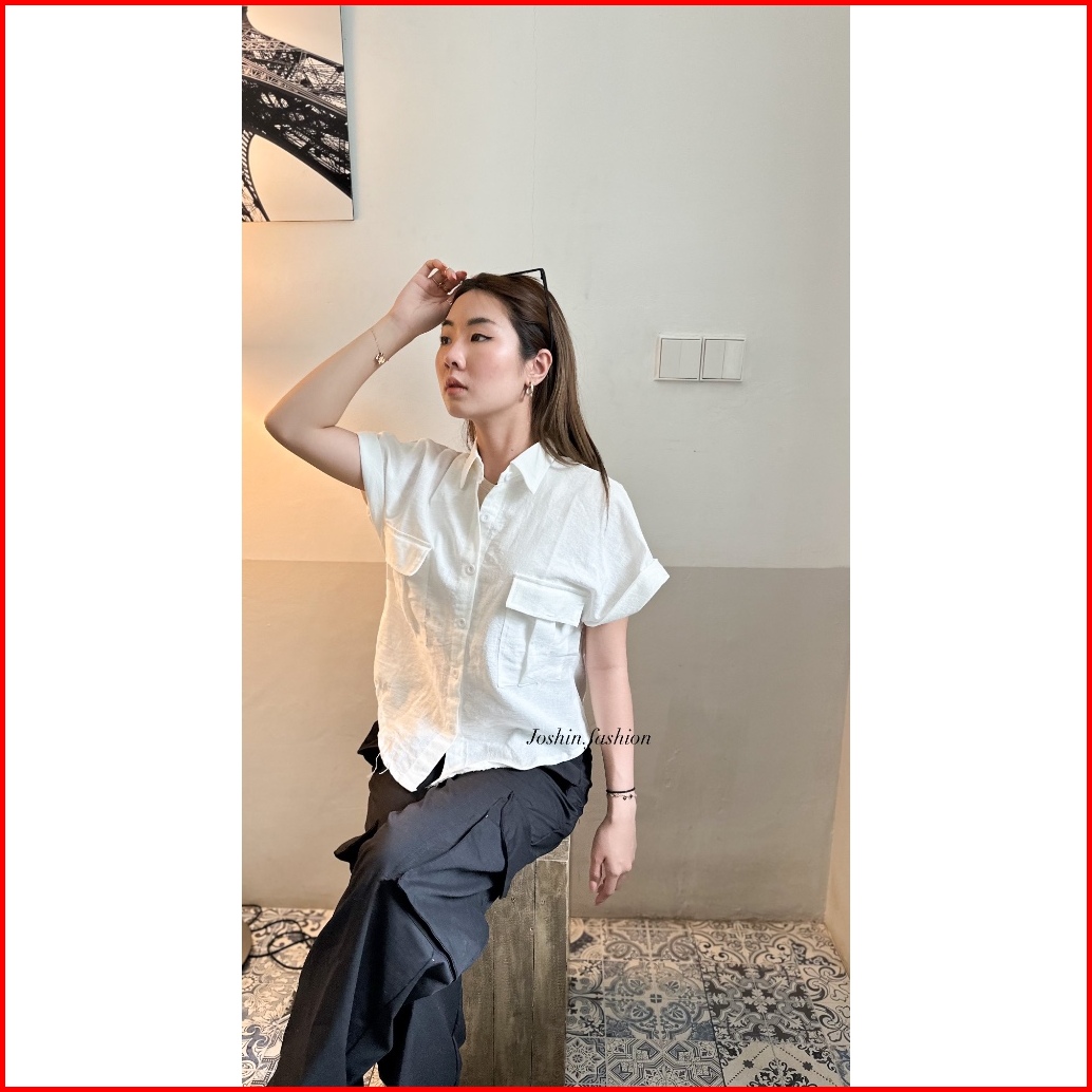 Joshin Atasan Kemeja Wanita Casual Pocket