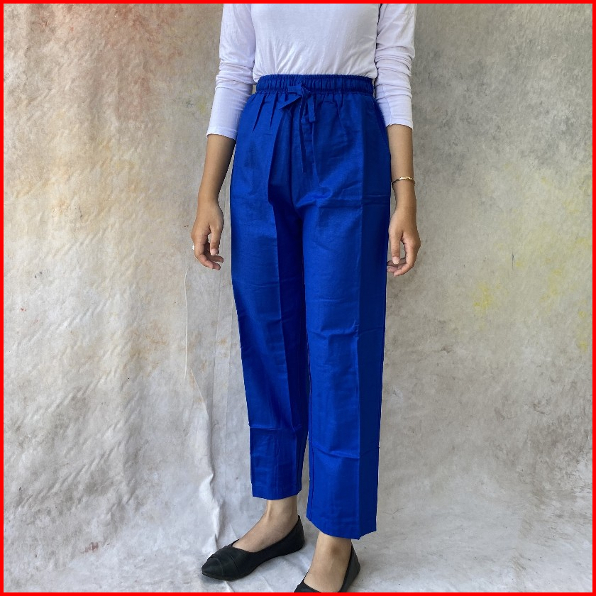 Ready Stok Yuka Pants - Jumbo M L Xl Xxl Celana Panjang Linen Wanita Pinggang Elastis Tali Serut Aktif Terlaris