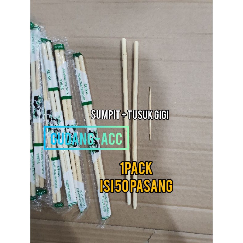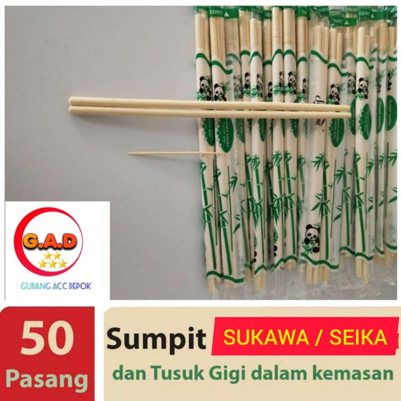 Sumpit Bambu + Tusuk Gigi Isi 50 Pasang / Sumpit Sukawa / Sumpit Panda Murah Gratis Ongkir Garansi Pengiriman