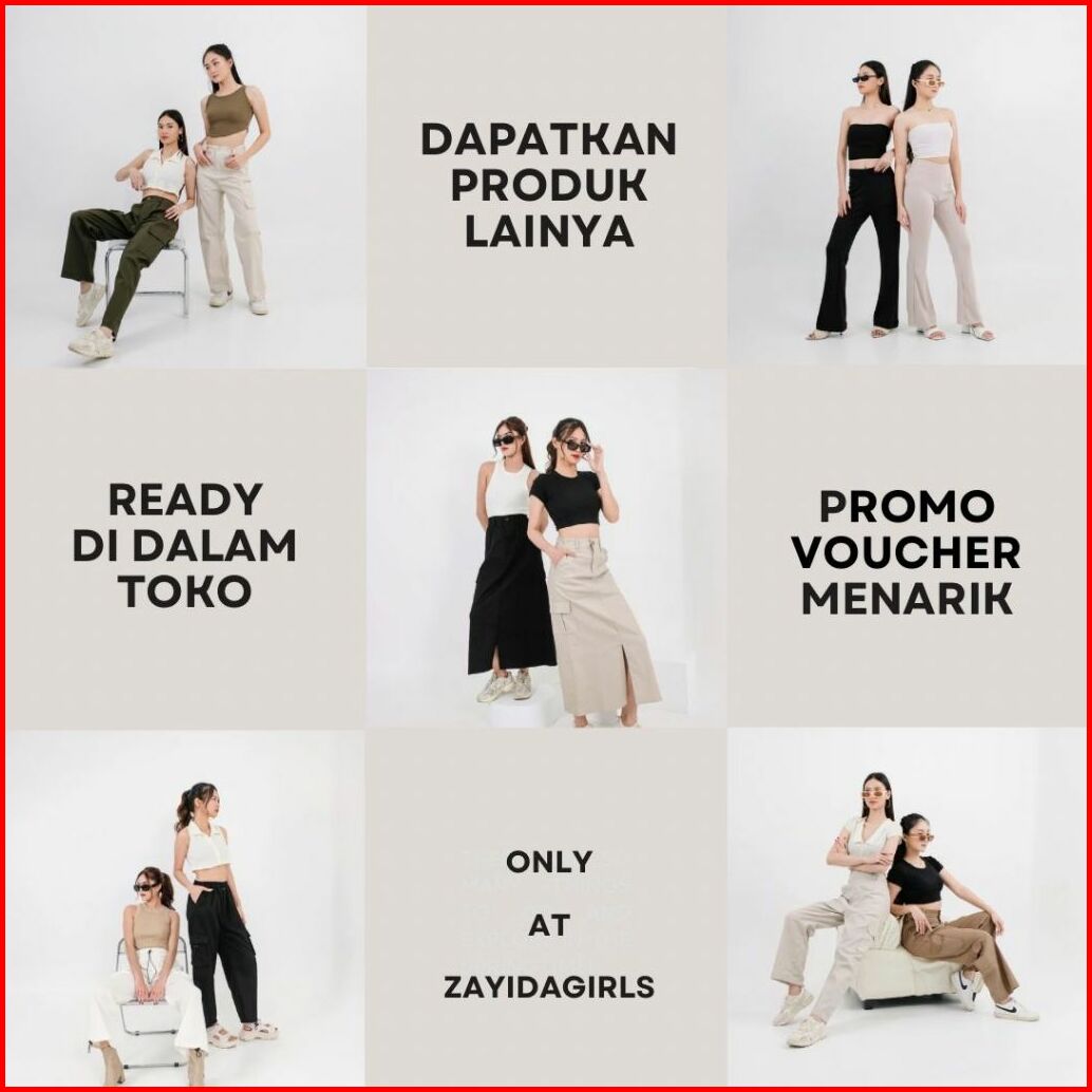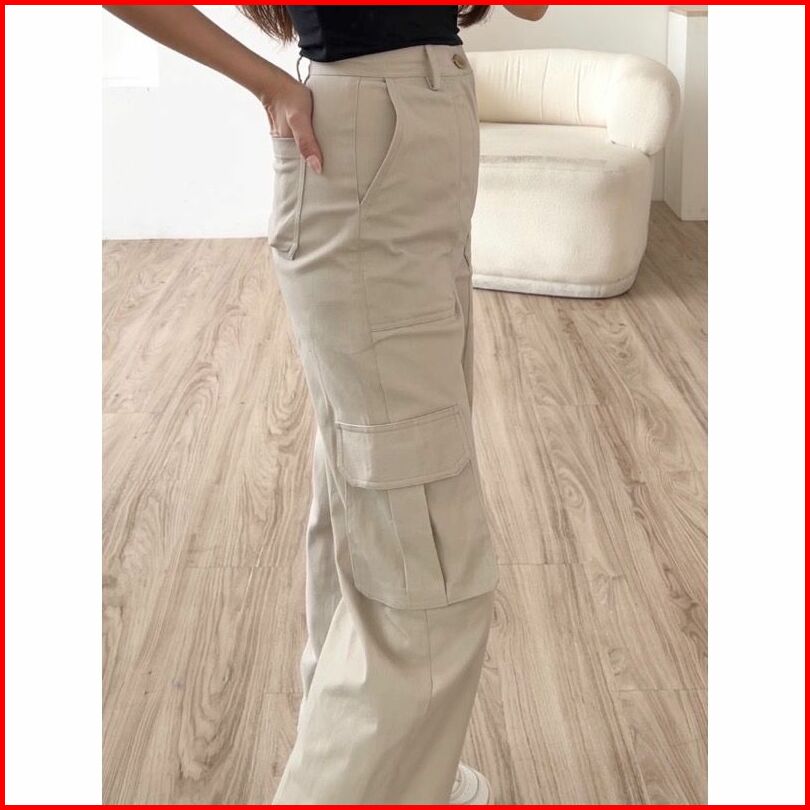 Zayida - Rora Cargo Pants - Celana Cargo Wanita Katun Twill Stretch Highwaist Loose Korean Jumbo
