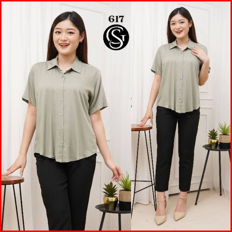 Kemeja Wanita Kemeja Wanita Tangan Pendek Katun Twill 30s - 617
