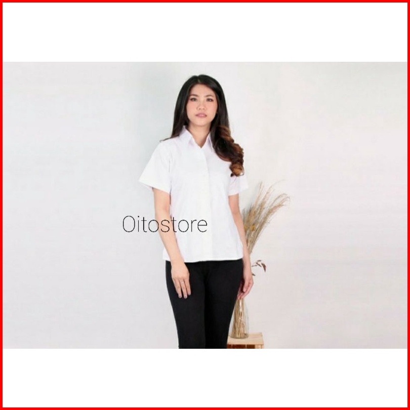 Kemeja Polos Lengan Pendek Putih Hitam Wanita S-xxl