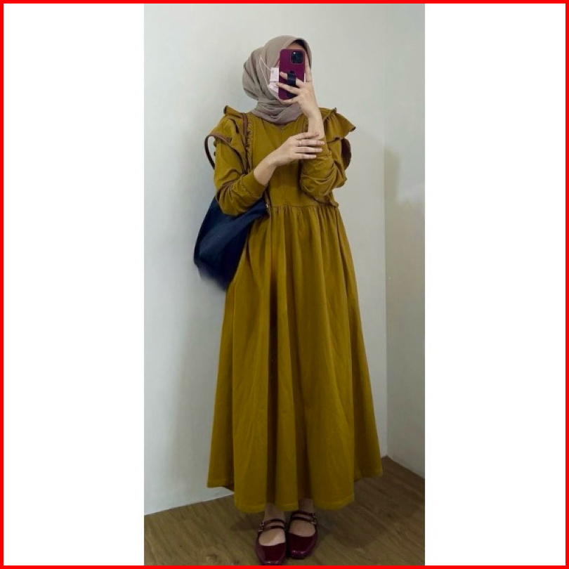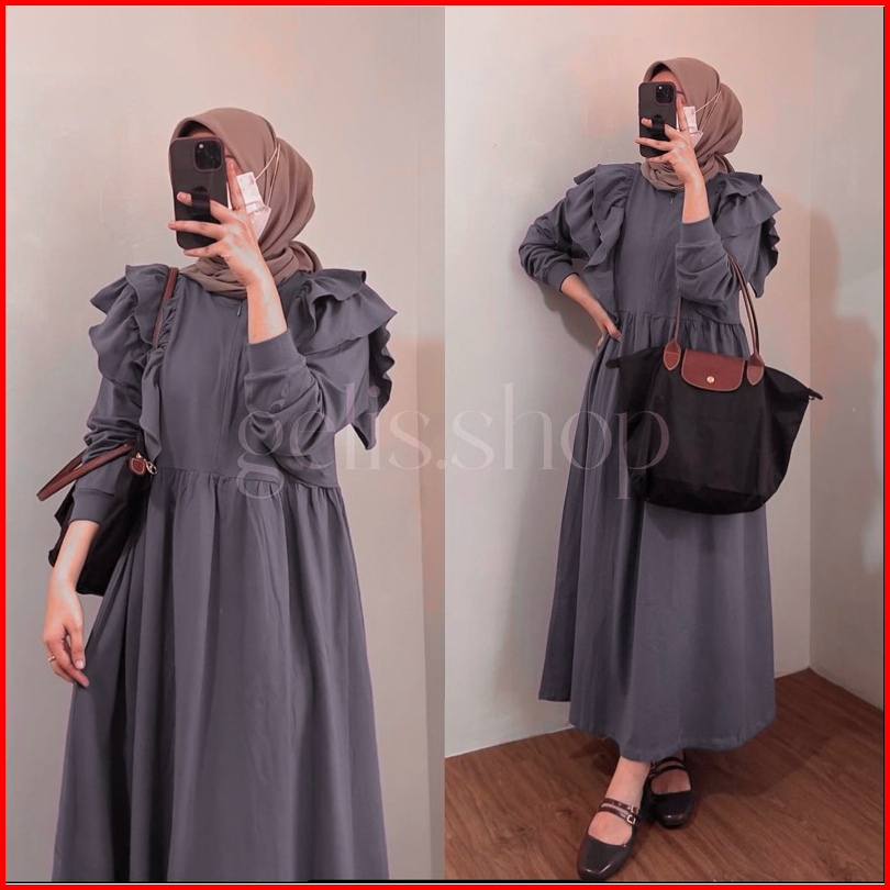 Meldi Ruffle Dress Gamis Muslim Wanita Matt Cringkle Airflow Polos Basic Premium All Size Fit To Xl Besar Ootd Kondangan