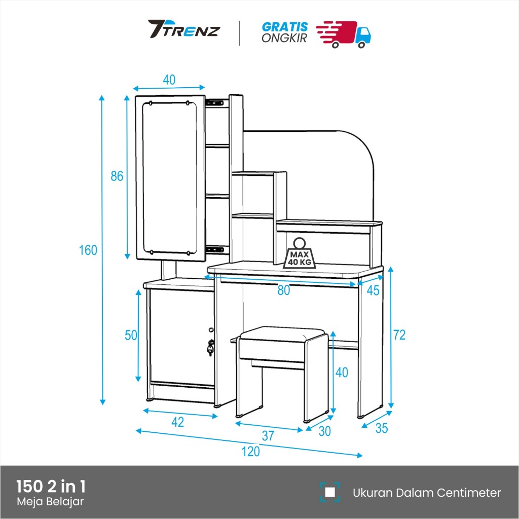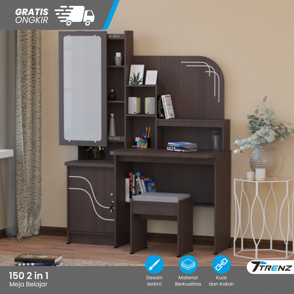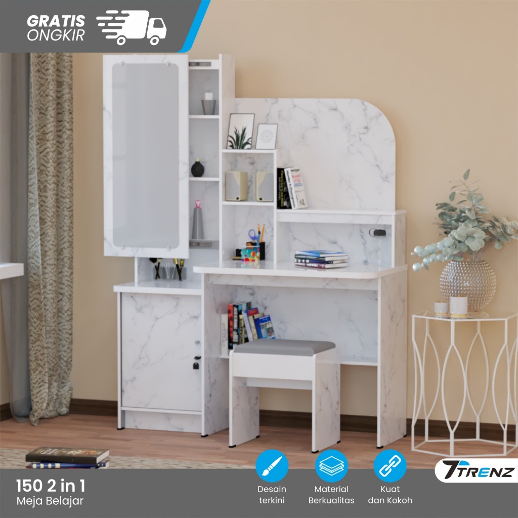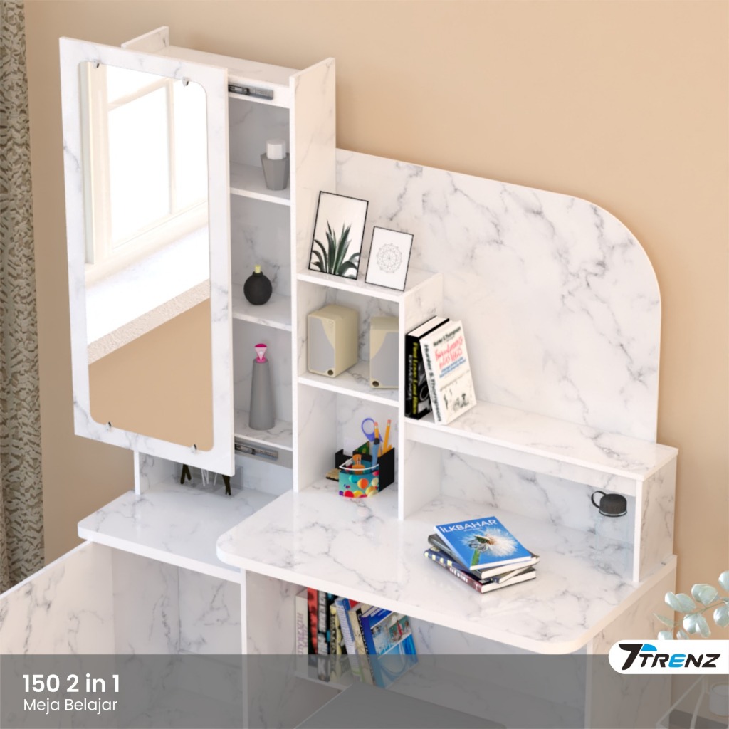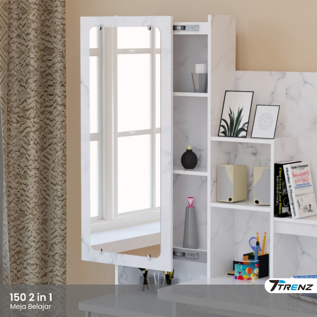 Trenz Furniture - Meja Belajar Rias Kaca Siliding Polos Meja Belajar Multifungsi Kaca Geser TERMURAH