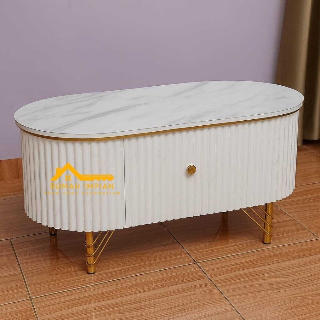 Meja oval laci top tabel hpl motif marmer body pvc kaki besiMeja Tamu Minimalis Meja Ruang Tamu Minimalis Aesthetic Meja Estetik