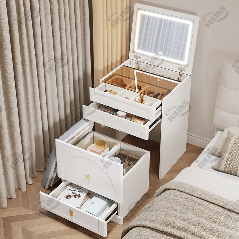 Kayu SolidMeja Rias Lipat 3 Warna LED Cermin Aesthetics Lemari Susun Minimalis Lemari Laci ly