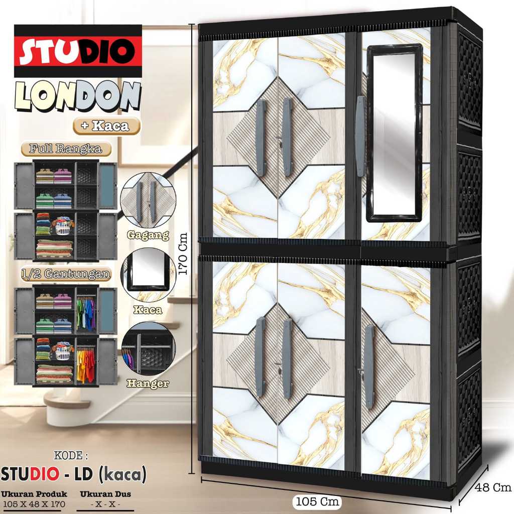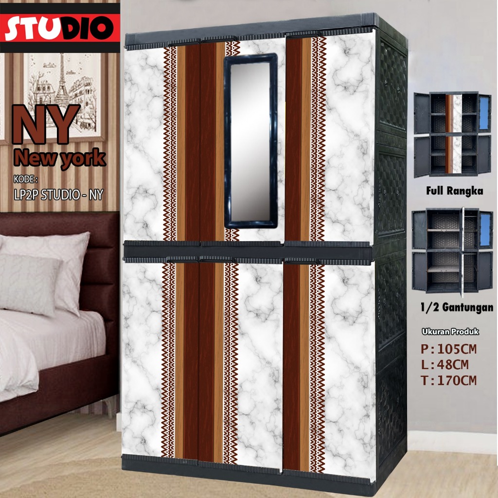 LEMARI PAKAIAN PLASTIK 3 PINTU JUMBO BESAR GANTUNGAN KACA STUDIO