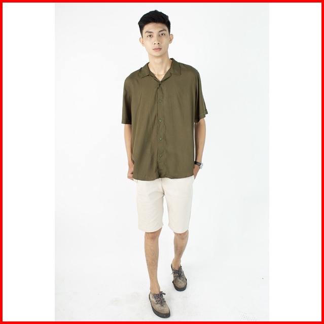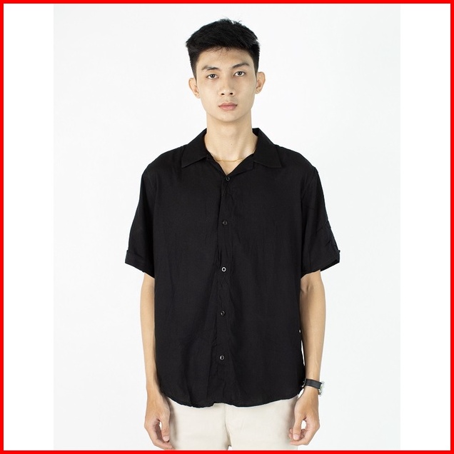 Fortklass Rayon Polos Kemeja Polos Pria Lengan Pendek Kasual