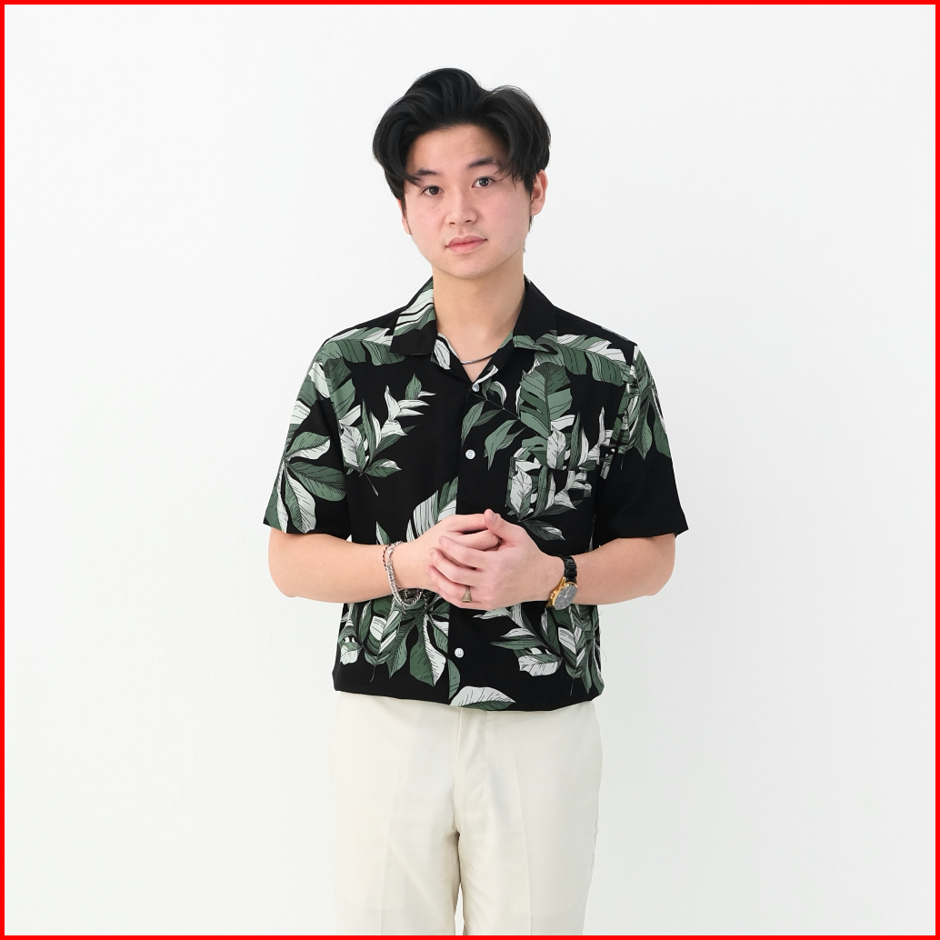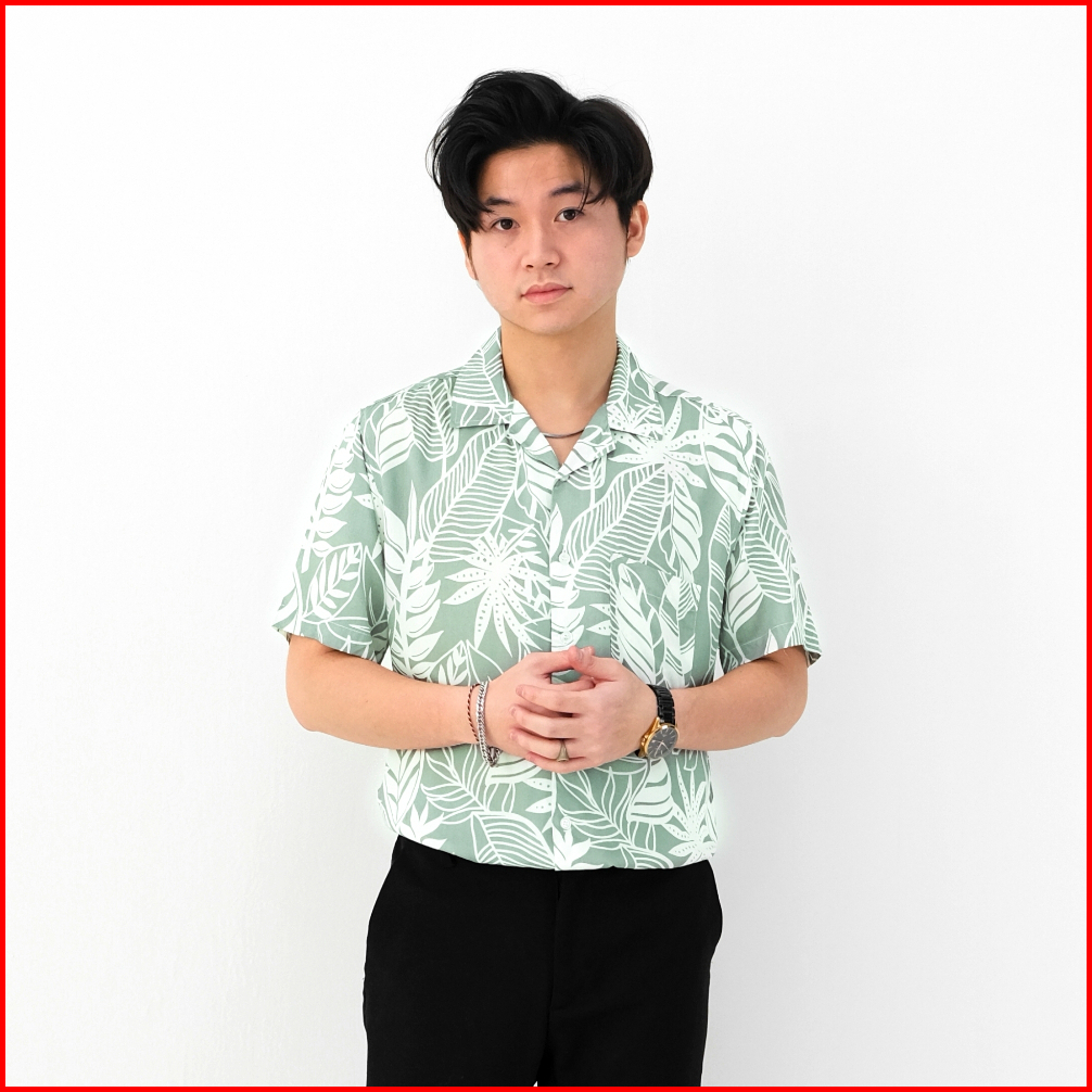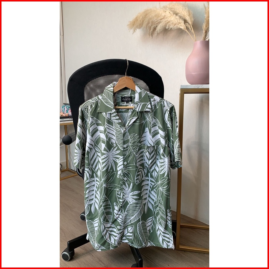 Sanvanina Kemeja Hawaiian Slim Fit Printing Panama Kemeja Pantai Motif Abstrak Daun E-2004