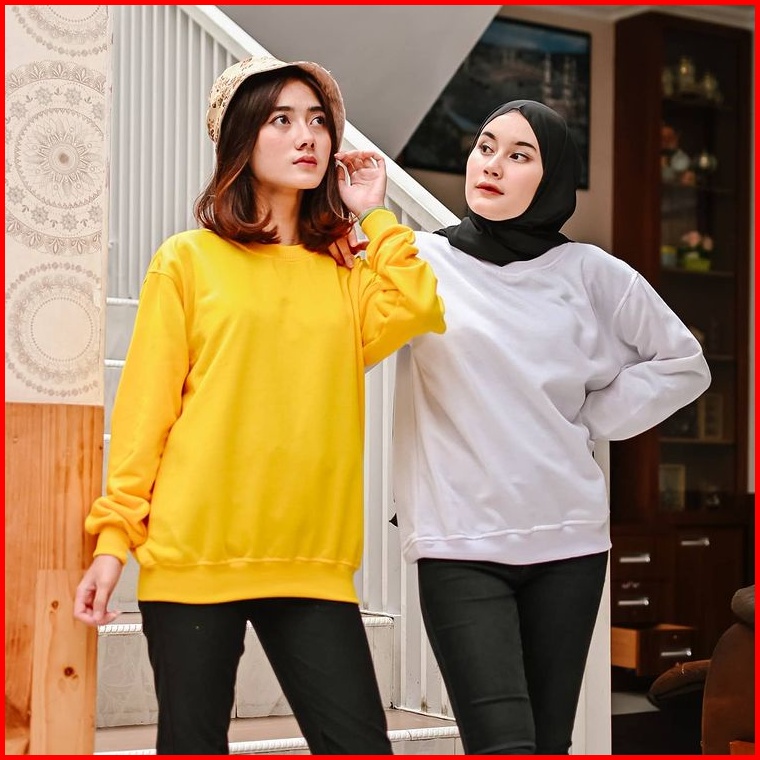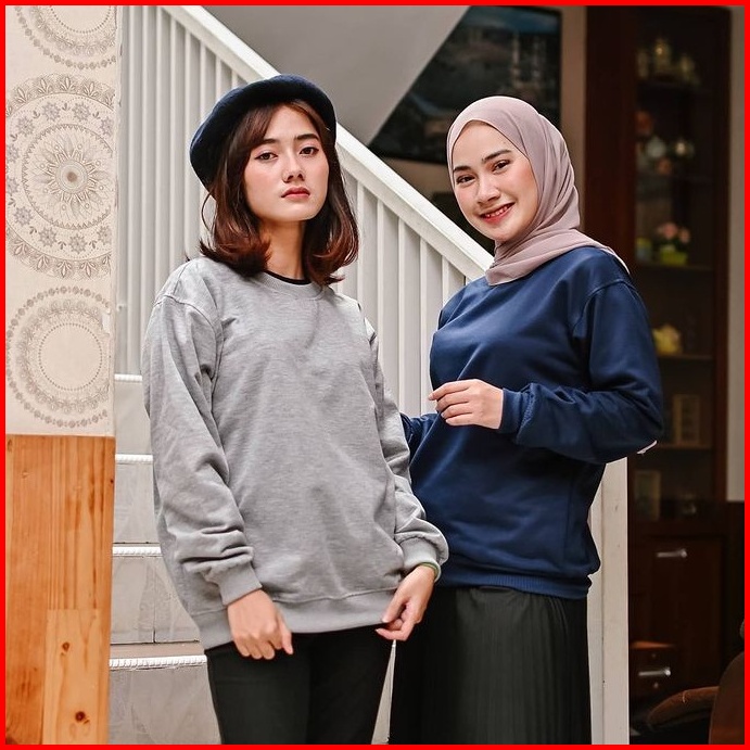 Basic Sweater Polos Pria Wanita M - L - Xl - Xxl Sweater Crewneck Polos Pria Wanita