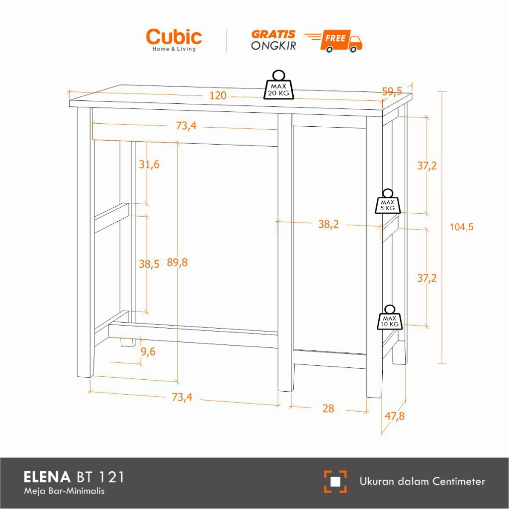 Cubic Meja Makan Tinggi / Bar Table / ELENA BT 121