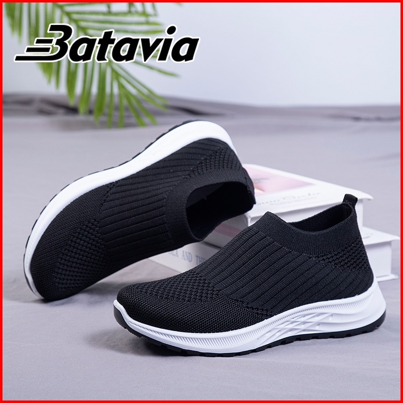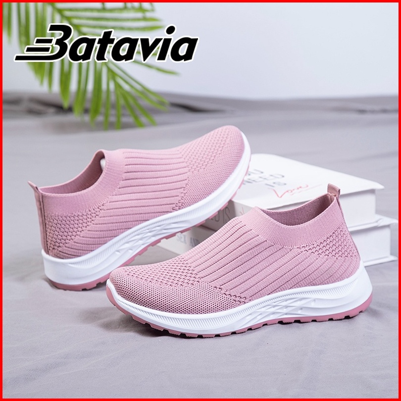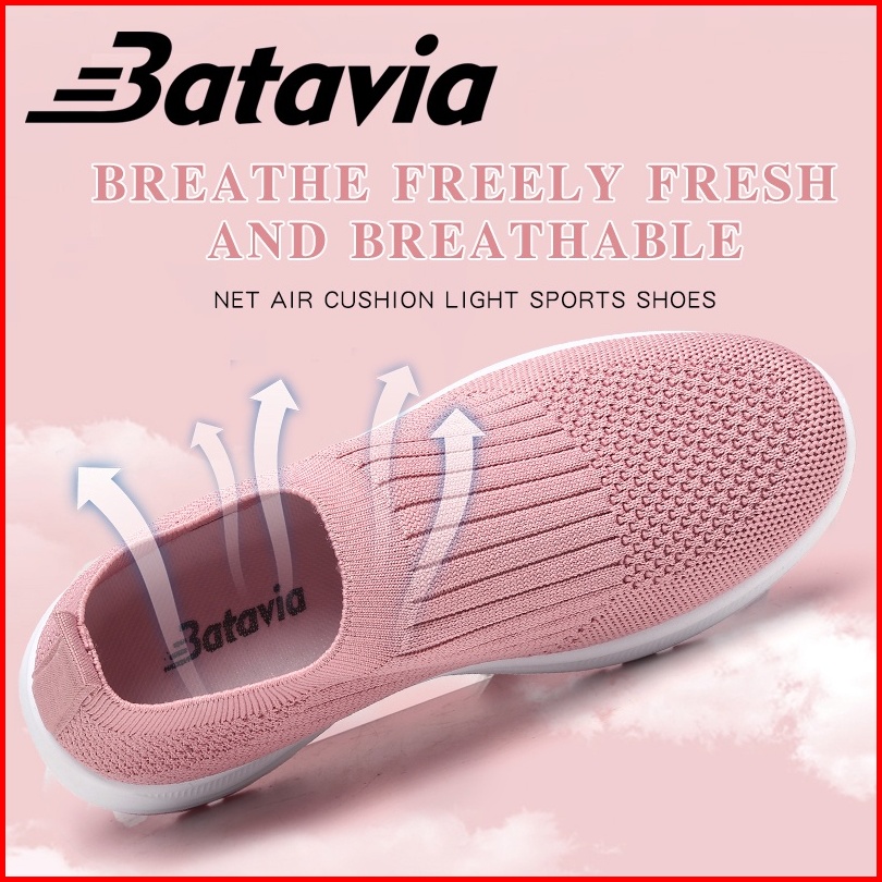 Batavia Baru Sepatu Wanita Olahraga Rajut Canggih Bernapas Fashion Olahraga Merah Muda Hitam Abu-abu Sepatu Sekolah Wani
