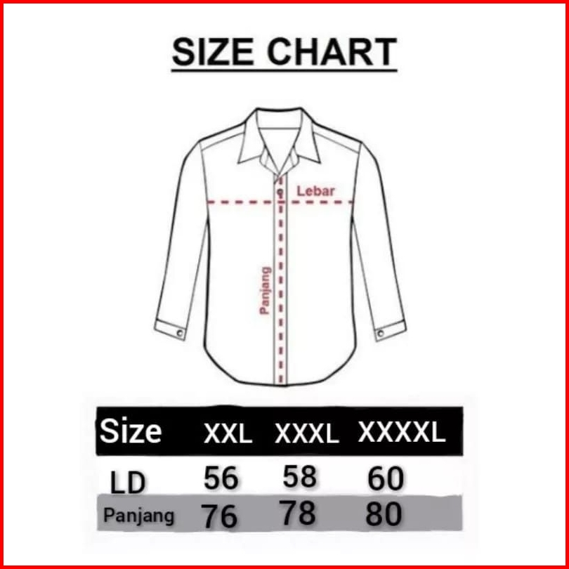 M= LD 100CM, L= LD 104 CM, XL LD 108CM, XXL= LD 112 CM, XXXL= LD 116 CM, XXXXL= LD 120 CM