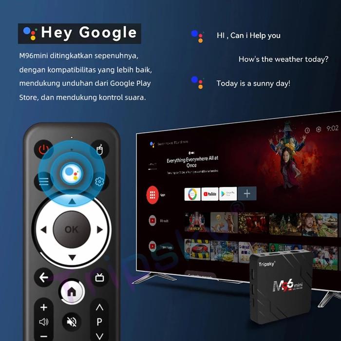 Tripsky Stb Android Tv Box M96 Mini , Alat Youtube Ke Tv 16Gb+32Gb, Quad-Core Amlogic S905, Garansi Resmi, Gratis Ongkir