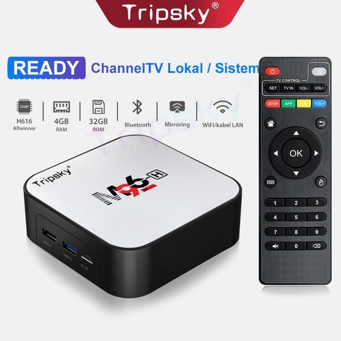 Tripsky Stb Android Tv Box M96-H, Set Top Box Digital Nirkabel Android 4Gb+32Gb Rom Mendukung Wifi Bluetooth Hdmi Kabel