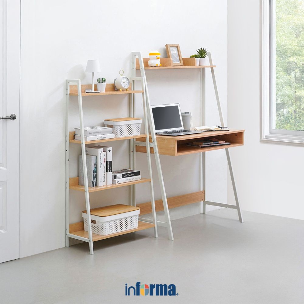 Informa Brook Meja Kantor Dengan Rak - Putih/Cokelat Oak Office Table Furnitur Kantor Meja Kerja Belajar Serbaguna