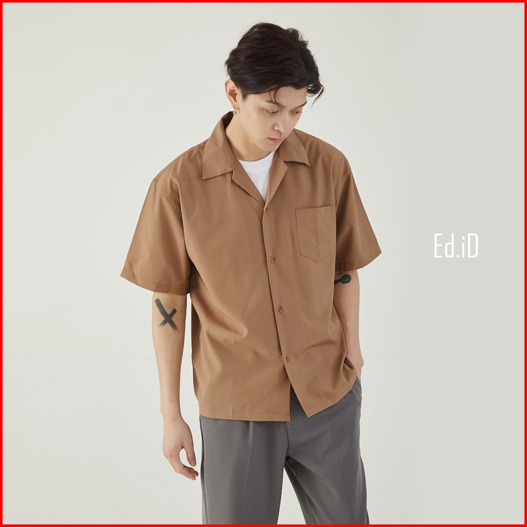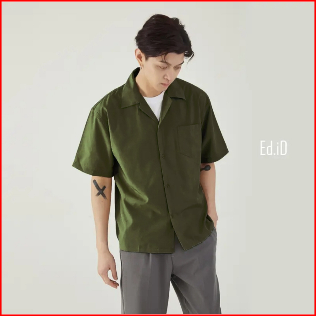 Amspro - Kemeja Polos Pria Kemeja Vneck Atasan Pria Pd-07 Kasual Trendi Lengan Pendek