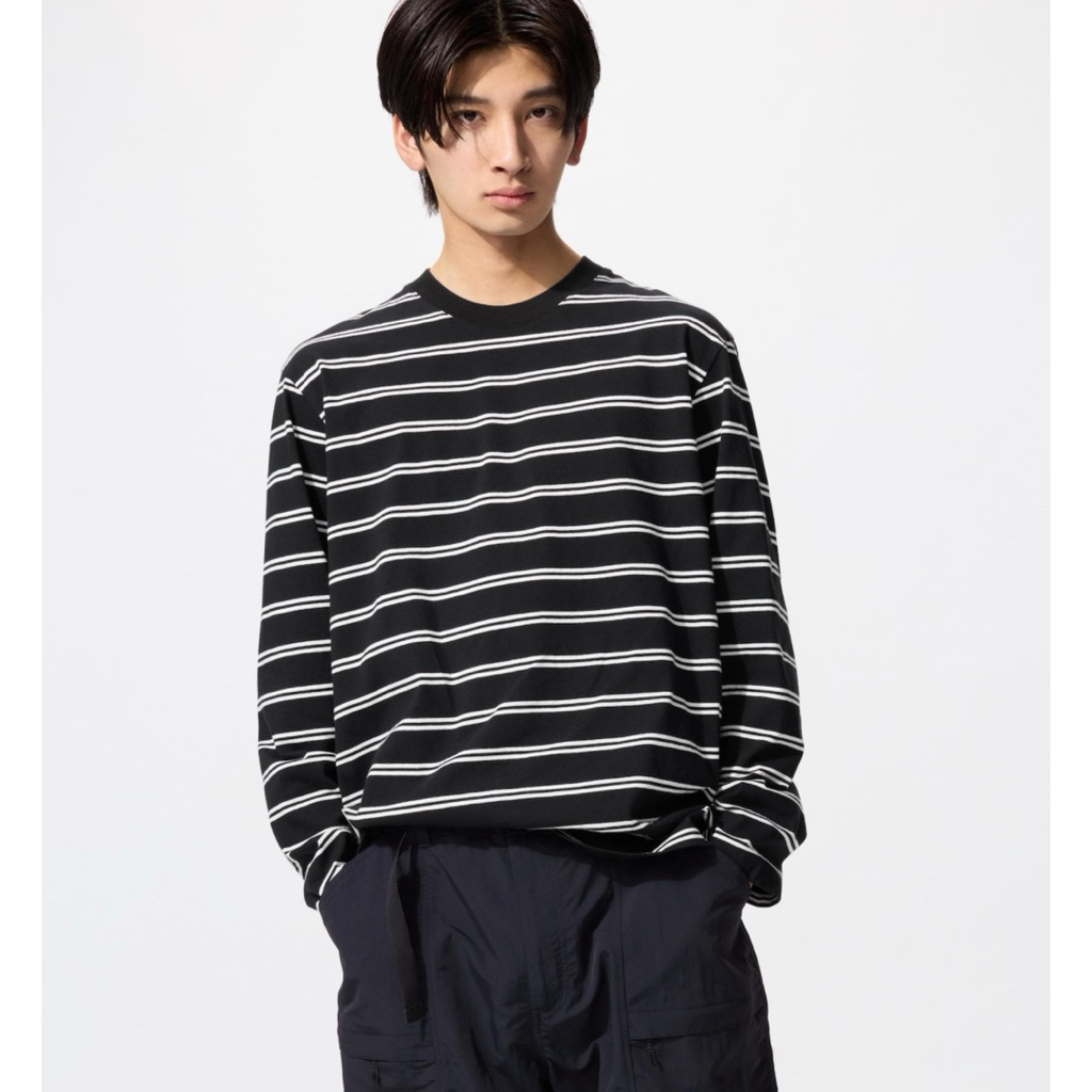 Kaos T-Shirt Garis Lengan Panjang Cowok Uniqlo New Arrival