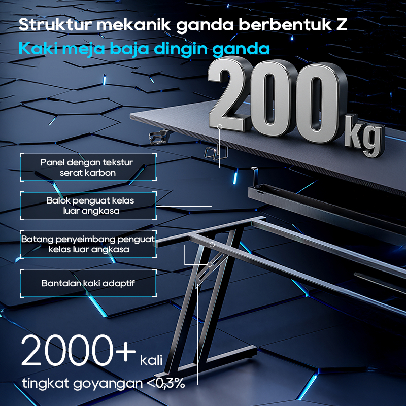 Xpanse Meja Gaming Fiber Karbon | Meja Komputer Adjustable Split-Top | Meja Kantor Minimalis untuk Esport & Streaming