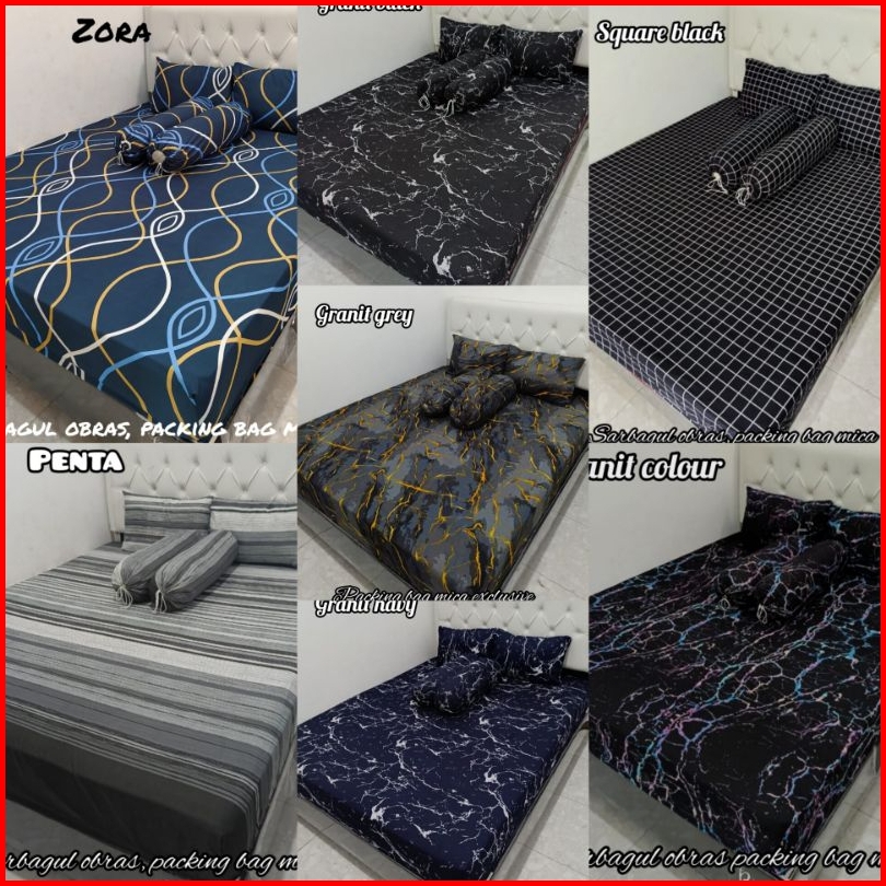 Sprei Homemade Sarung Busa Sprei Resleting Motif Abstrak Dewasa Hitam Granit